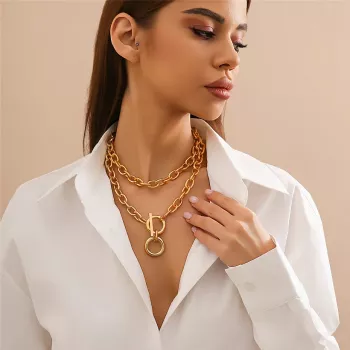 Chunky Goth Chain Necklace Set - Heavy Metal OT Buckle Choker (2Pcs)